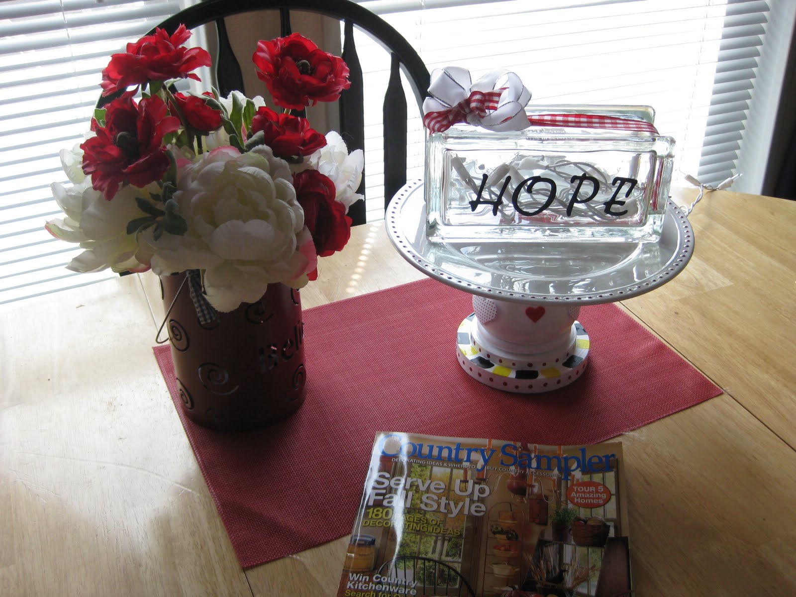 Then I did a prototype of something that we will be using at the wedding reception. This is just a mock one but it will give you the idea of what we're going to do on the gift/favor tables :) And of course had to put one of my flowers on it too. Thank goodness this was the prototype as my glue stuck to the paint and I had it upside down! lol Oh well, it will be fixed when I get the buy off from the bride :)
